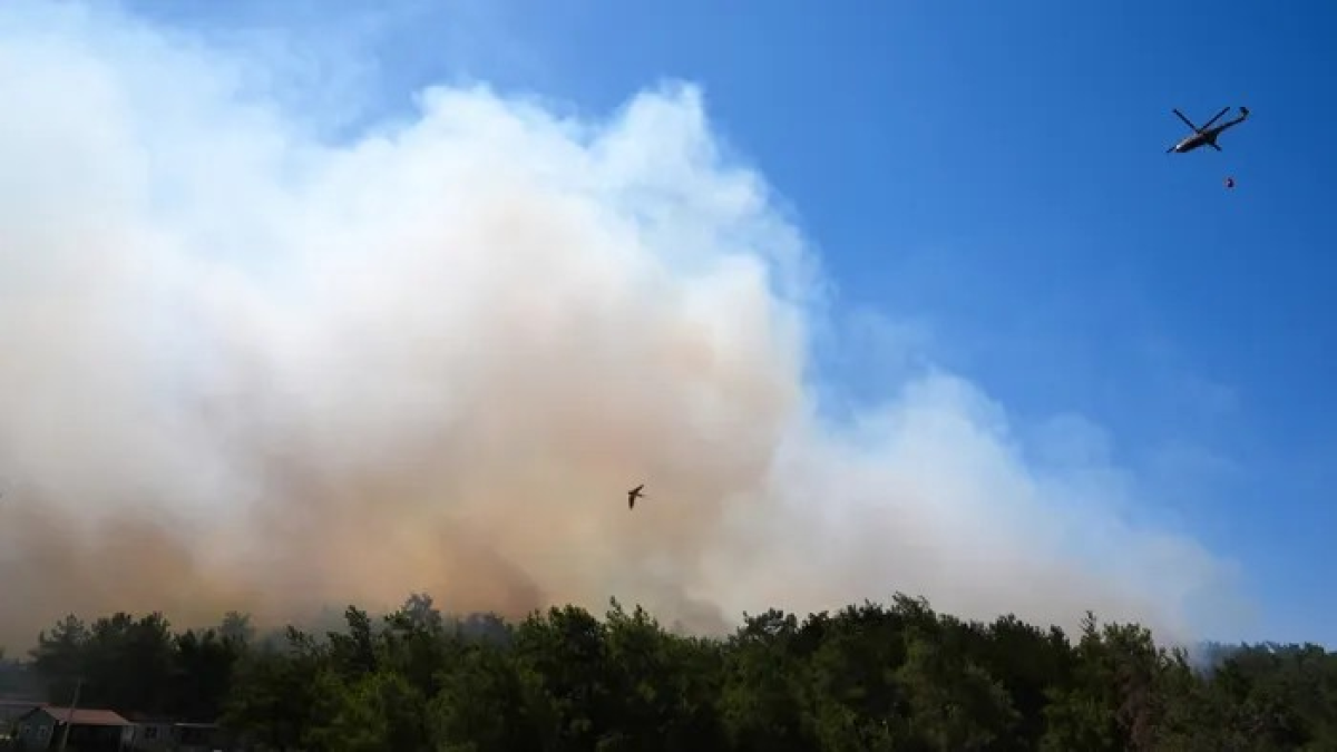İzmir'de orman yangını çıktı. Yangına havadan ve karadan müdahale ediliyor. Bazı evler tedbir amaçlı tahliye edildi. Menderes ilçesi Şaşal Mahallesi'nde saat 13.00 sıralarında orman yangını çıktı. İhbarla bölgeye orman Bölge Müdürlüğü ekipleri sevk edildi. Alevlere havadan ve karadan müdahale sürüyor.İzmir'in Menderes ilçesinde çıkan orman yangınını söndürme çalışmaları 5 uçak 13 helikopter, 35 arazöz, 7 su ikmal aracı, 4 dozer ve çok sayıda orman işçisiyle sürüyor.
