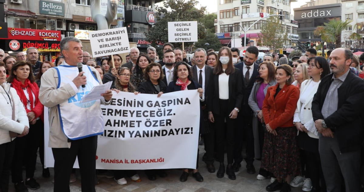Manisa Emek ve Demokrasi Platformu’nun son günlerde halkın iradesiyle seçilmiş belediye başkanlarına ve belediyelere kayyum eliyle istikamet dayatmaya çalışan iktidara karşı düzenlediği ‘Kayyuma Hayır, Halkın İradesine Evet’ konulu basın açıklamasına Yunusemre belediye başkanı Semih Balaban Şehzade Belediye Başkanı Gülşah Durbay ve çok sayıda CHP'li katılarak destek verdi.