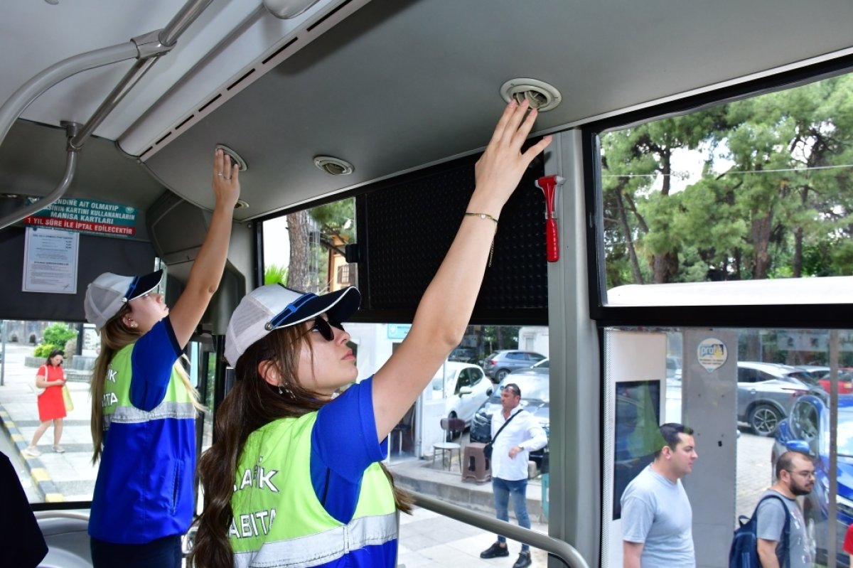 Manisa Büyükşehir Belediyesi Ulaşım Dairesi Başkanlığı ekipleri, şehir içi toplu taşıma araçlarında klima denetimi gerçekleştirdi. Manisalıların ulaşımlarını daha rahat bir ortamda gerçekleştirmesi amacıyla yapılan denetimlerde, klimalarını çalıştırmayan otobüs şoförlerine uyarılarda bulunuldu. Yaz aylarının gelmesi ve hava sıcaklıklarının artmaya başlamasıyla birlikte Manisa Büyükşehir Belediyesi Ulaşım Dairesi Başkanlığına bağlı ekipler, şehir içi toplu taşıma araçlarında klima denetimi gerçekleştirdi. Kent merkezindeki toplu taşıma araçlarını tek tek kontrol eden Trafik Zabıta ekipleri, kliması açık olan otobüs şoförlerine yaz boyunca klimanın aktif olması gerektiğini belirtti. Ekipler, kliması açık olmayan otobüs şoförlerine de uyarılarda bulundu. Vatandaşların daha rahat ve ferah bir yolculuk yapabilmesi için denetimlerin rutin olarak sürdürüleceği belirtildi.