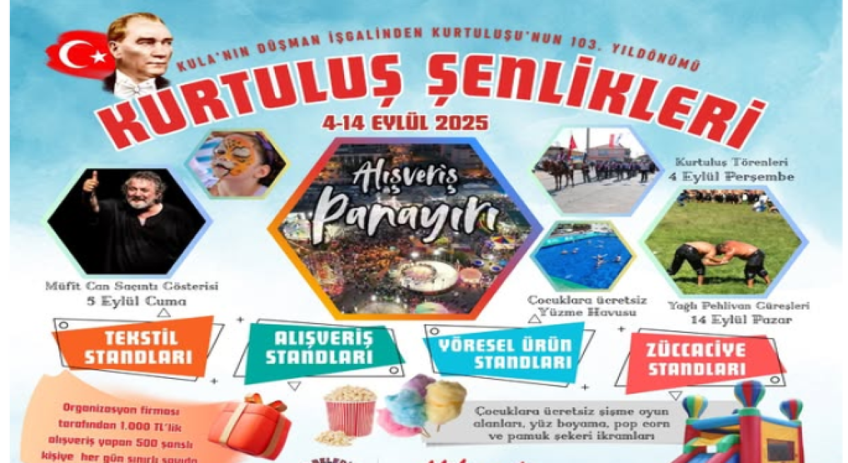 Kula kurtuluş şenlikleri başlıyor Editor: Haber236 02 Eylül 2025 - 10:17 Bu haber 181 defa okunmuştur. Paylaş Tweetle WhatsApp YORUMLAR 0 Yorum adlı kullanıcıya cevap Başkan Nurlu Uşak zirve dağcılık spor kulübü üyeleri ile bir araya geldi Salihli muhtarlar derneği yönetimi CHP'de Şehzadeler belediye encümeni toplandı Baro yönetimi başkan Şimşek'i ziyaret etti Büyükşehir Gördes'i 2 günde asfaltladı Zabıta 194 yaşında