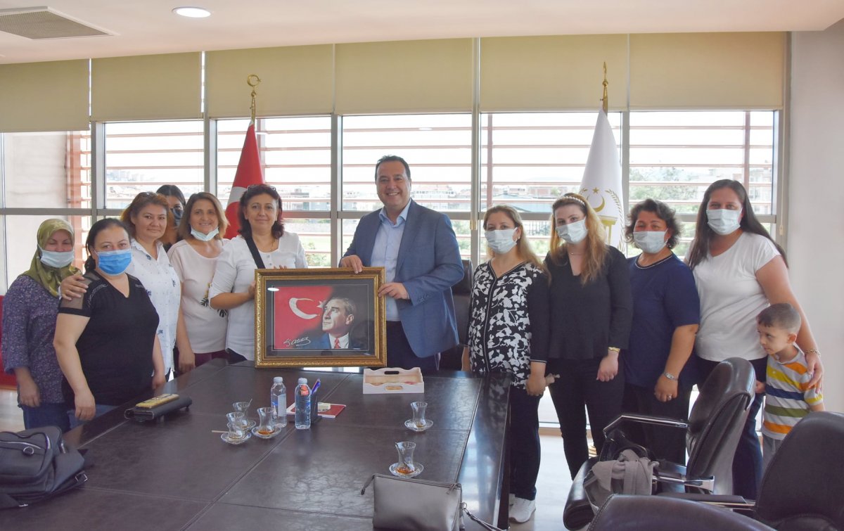 Halk Eğitim Merkezi kursiyerleri belediye başkanı Besim Dutlulu'yu ziyaret etti.Kursiyerleri belediye misafir eden başkan Dutlulu'' Şehrimizdeki üreten kadınlara destek olmaya devam edeceğiz. Nazik ziyaretleri için kendilerine çok teşekkür ediyorum.''dedi.