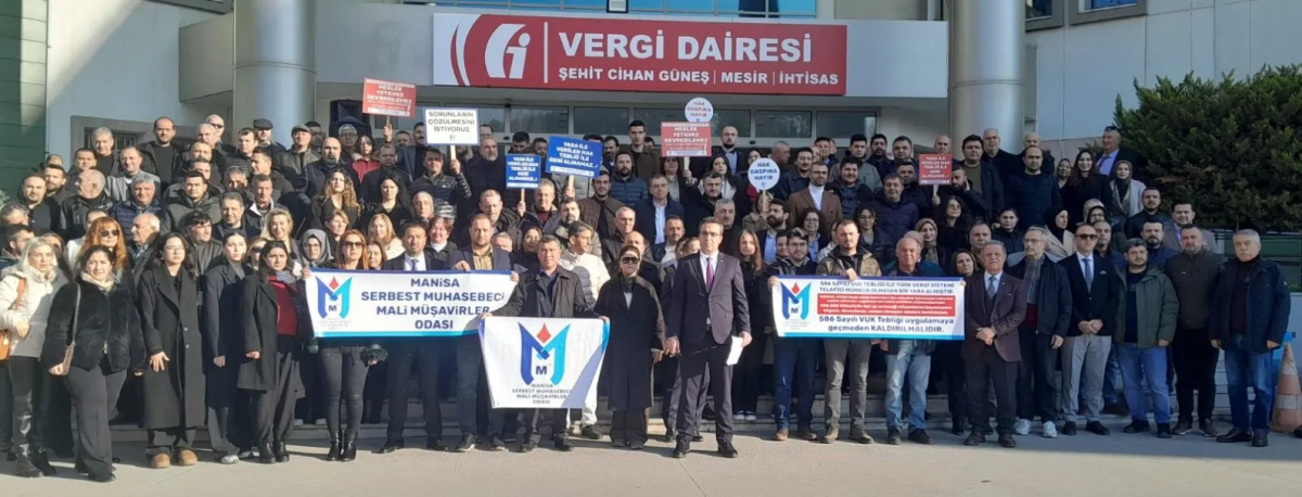 Manisa Serbest Muhasebeci Mali Müşavirler Odası (SMMMO) Başkanı Mustafa Üye, 13 Aralık 2025 tarihli ve 586 sayılı Vergi Usul Kanunu Genel Tebliği’ne ilişkin Manisa Vergi Dairesi önünde basın açıklaması yaptı. Üye, defterlerin meslek odaları veya birlikler tarafından tutulmasına yönelik düzenlemeye tepki göstererek, tebliğin geri çekilmesini istedi.