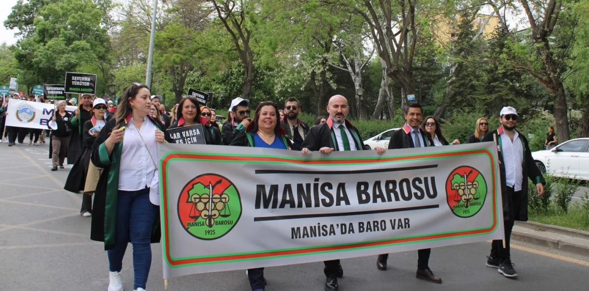 Manisa Barosu'da Ankara'da.Türkiye Barolar Birliği (TBB) "Büyük Savunma Mitingi", Ankara Anıtpark'ta "Avukat İçin de Adalet" isteyen binlerce avukatın katılımıyla gerçekleşirken Manisa Barosu mitingde yerini aldı. Manisa Barosu Başkanlığı da avukatların mitinge katılması için büyük çaba sarf etti.Yürüyüş kortejinin oluşturulmasının ardından binlerce avukat, "Savunma Susmadı Susmayacak", "Çoklu Baroya Hayır", "Avukata Dokunma", "Avukat Yaşarsa Adalet Yaşar", "Herkes İçin Adalet, Adalet İçin Avukat", "Angaryaya Hayır", "Emeğimizin Hakkını Savunuyoruz", "Avukata Şiddete Hayır", "Güçlü Baro Güçlü Avukat", "Bağımsız Yargı" yazılı pankartlar ve sloganlar eşliğinde TBB önünden miting alanı olarak belirlenen Anıtpark'a yürüdü.