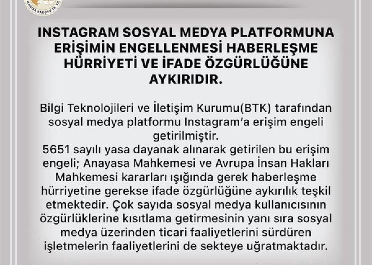 Manisa Barosundan INSTAGRAM erişimin engellenmesine tepki Editor: Haber236 07 Ağustos 2024 - 07:45 Bu haber 175 defa okunmuştur. Paylaş Tweetle WhatsApp YORUMLAR 0 Yorum adlı kullanıcıya cevap Geleneksel zeytincilik çalıştayı başlıyor Yapılamayan 23 nisan yapıldı Başkan Okur mahalle ziyaretlerini sürdürüyor Aranan 3 kişi “huzur uygulaması”nda yakalandı Kula'da tutuklu kalmadı Başvurular 25 ekimde