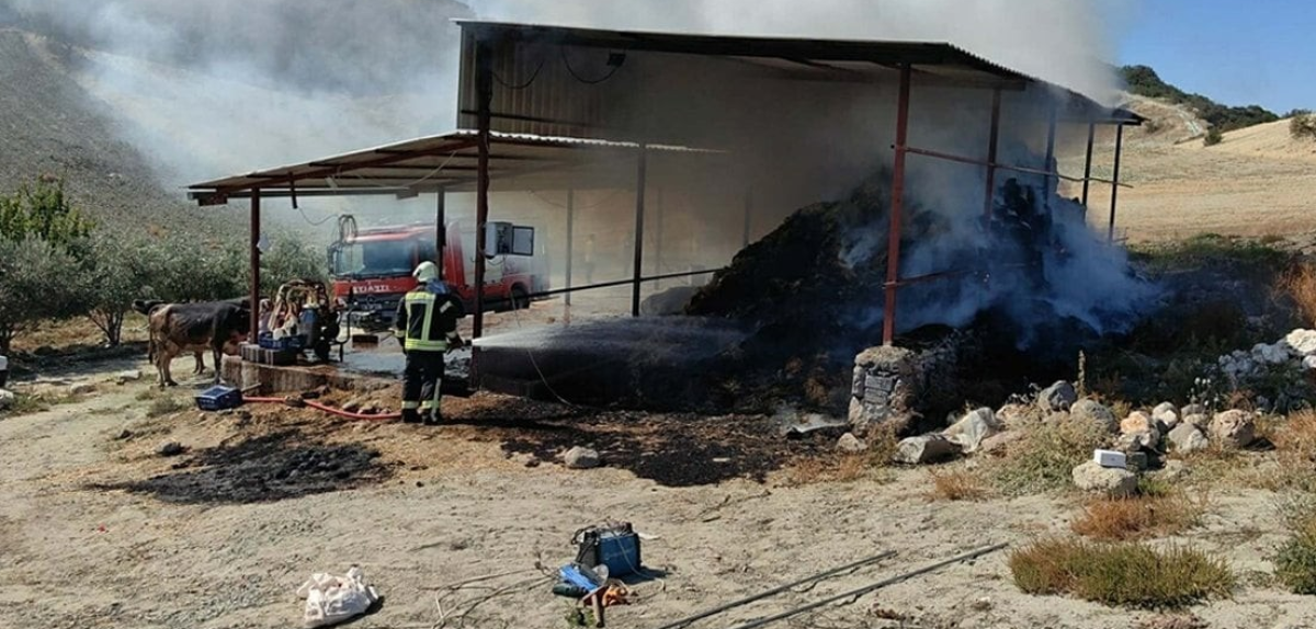 Manisa'da ahırda yangın çıktı, 7 inek telef oldu