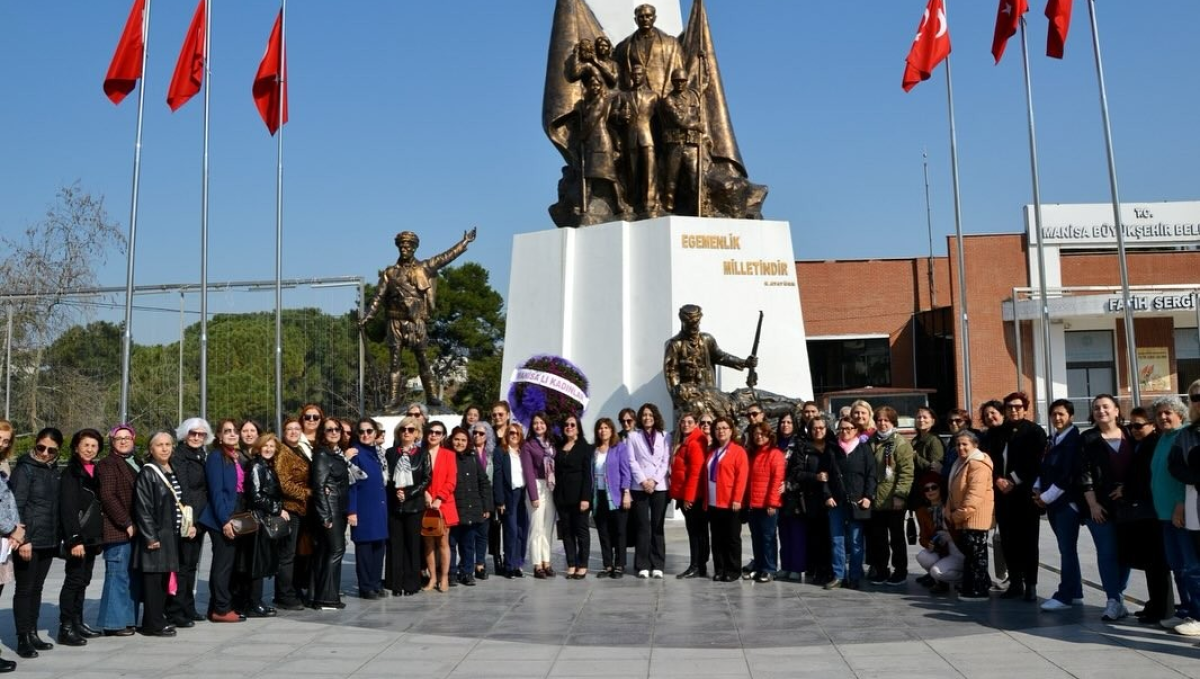 Manisalı kadınlar 8 martta Atatürk anıtına çelenk koydu