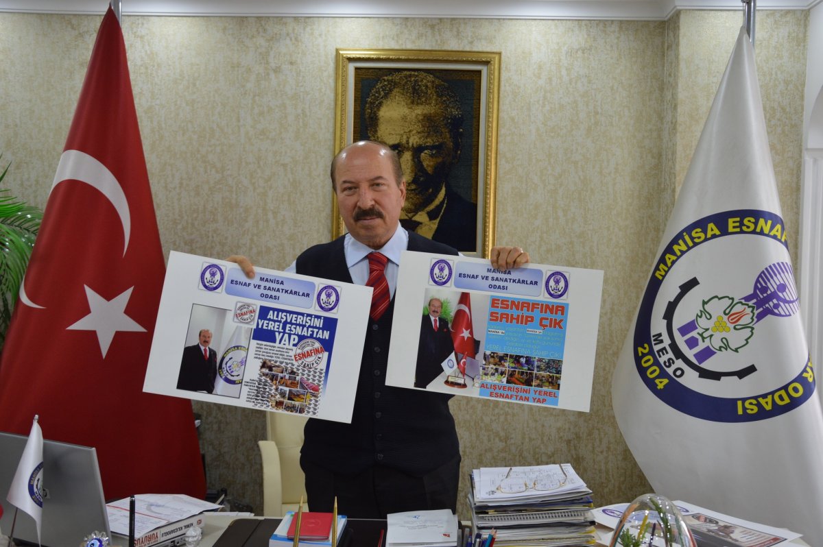 Vatandaşlara seslenen Manisa esnaf ve sanatkarlar odası başkanı Bahattin Akyüz 'AVM'den alma esnaftan al 'çağrısı.MESO başkanı Akyüz'ün çağrısı şöyle: