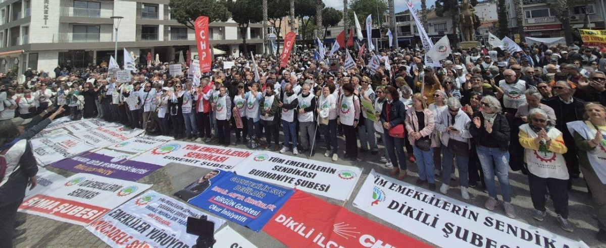 Tüm emeklilerin sendikası’nın ülke genelinde sürdürdüğü mitingler zinciri Dikili'de bölgesel buluşmayla büyüdü.Dün saat :13.00’te Bülent Ecevit Meydanı’ndan başlayan yürüyüş, Atatürk Meydanı’nda son buldu. Yoğun katılımla gerçekleşen mitingde emekliler, “sefalet zammı”na ve derinleşen hayat pahalılığına karşı taleplerini dile getirdi.Mitingde konuşan Tüm Emeklilerin Sendikası Ege Bölge Sorumlusu Nuran Kamalı Şahin, okullarda yaşanan olaylara dikkat çekerek Milli Eğitim Bakanı Yusuf Tekin’i istifaya çağırdı. Konuşmasını sürdüren Şahin, emeklilerin ağır bir yoksullaştırma politikasıyla karşı karşıya olduğunu vurguladı.Şahin emeklilerin taleplerini de şöyle sıraladı: