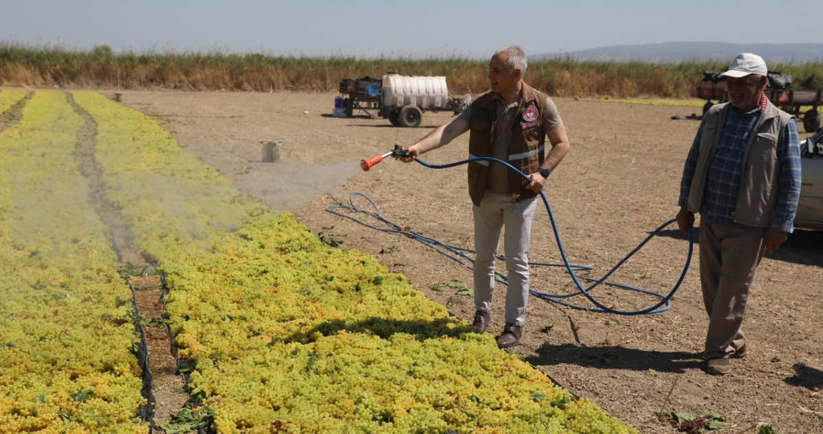 Manisa İl Tarım ve Orman Müdürü Metin Öztürk, Manisa’daki üzüm üreticileriyle bir araya gelerek üzüm hasat ve kurutma çalışmalarını yerinde inceledi. Metin Öztürk, üreticilerle üzüm kesti, sonrasında ise sergilerdeki kurutma çalışmalarına eşlik ederek, üreticilerden gelen görüş ve önerileri dinledi.