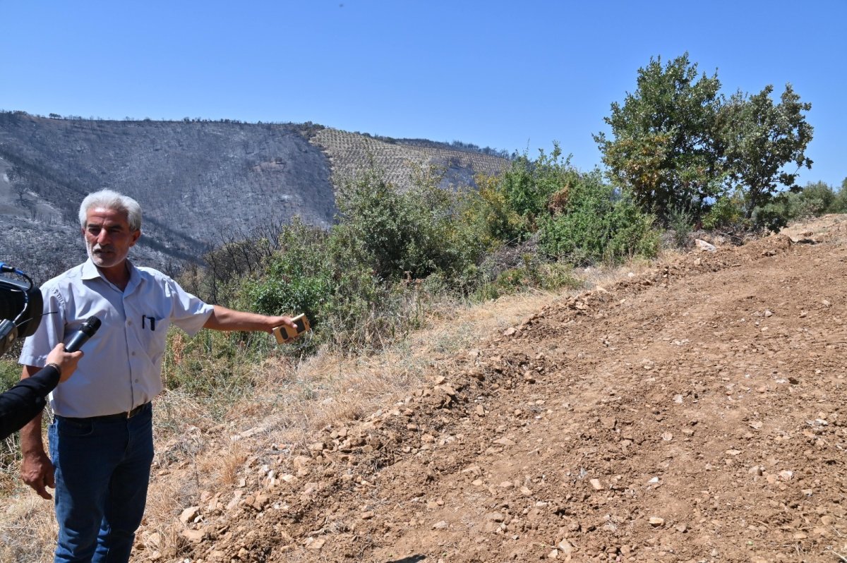 Büyükşehir Belediyesinin dozer ile yangını durdurduğu noktada yapılan çalışmayı anlatan Mahalle Muhtarı Yıldıray Bozdağ, Büyükşehir Belediye Başkanı Ferdi Zeyrek’e teşekkür etti. Bozdağ, “Yangın evlere gelmek üzereydi. Dozerin müdahale ettiği yer burasıydı. Ferdi Başkanımızdan Allah razı olsun. Bir sözümüzü iki etmedi. Kale köyde evler yanmadıysa Ferdi Başkanımın başarısıdır bu. Görüyorsunuz, Büyükşehir’in dozeri gelmemiş olsaydı yangın mahallenin içine girecekti. Burası çok kilit noktaydı. Köyü tehdit eden nokta burasıydı” ifadelerini kullandı.