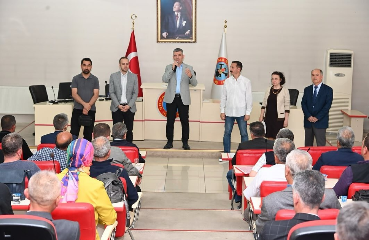 Belediye Başkanı Sercan Okur, 31 Mart 2024 Pazar günü yapılan Mahalli İdareler Genel Seçimlerinden sonra yeni seçilen muhtarlar ile Soma Kaymakamlığı’nın düzenlemiş olduğu Muhtarlar Eğitim Toplantısında bir araya geldi. Toplantı sonrası Başkan Okur yeni muhtarlara rozetlerini takdim etti.Soma Belediyesi Meclis Toplantı Salonunda gerçekleştirilen programda konuşan Başkan Okur, göreve gelen tüm muhtarları tebrik ederek, görev sürelerinde birlik, beraberlik ile başarılı çalışmalar temennisinde bulundu