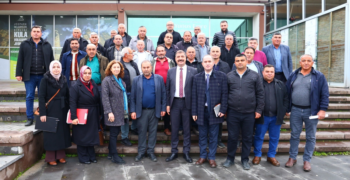 Kula’da Muhtarlarla Kırsal Mahalle Statüsü Değerlendirildi.Kula Belediye Başkanı Hikmet Dönmez, CHP Kula İlçe Başkanı Esen Çınar ve Manisa Büyükşehir Belediyesi Kula Koordinatörü Adem Yardımcı ile birlikte mahalle muhtarlarıyla Kültür Merkezi’nde bir araya geldi.