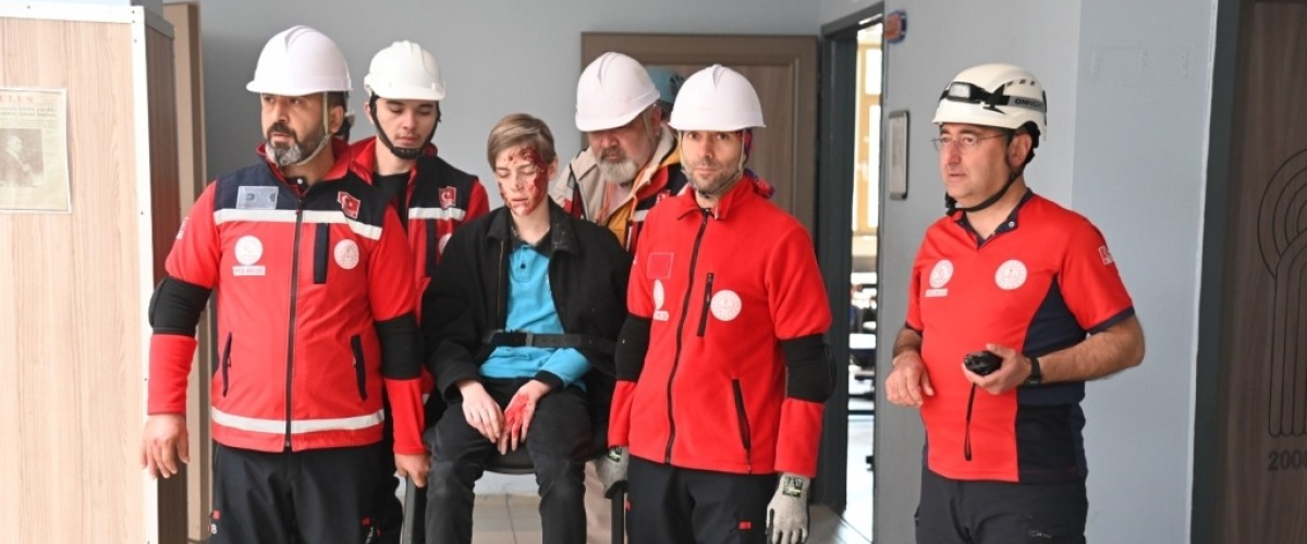 Polinas Mesleki ve Teknik Anadolu Lisesi'nde düzenlenen tatbikata, Büyükşehir Belediyesi İtfaiye ekiplerinin yanı sıra Milli Eğitim Bakanlığı Arama ve Kurtarma Birimi, AFAD, UMKE ve 112 Acil Servis ekipleri de katıldı.