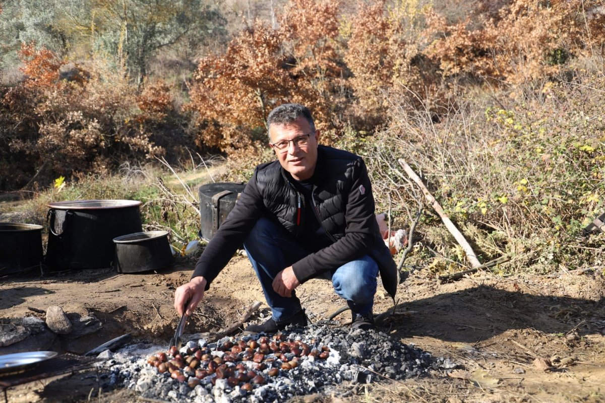 Közde kestane.Alaşehir Belediye Başkanı Ahmet Öküzcüoğlu denetlediği kırsalan alandaki çalışmaları sırasında çalışanların ısınmak için yaktığı ateşin közünde pişirdiği kestaneleri çalışanlarına yedirdi.Başkan Öküzcüoğlu'Tüm Alaşehirliler ve vatantaşlara bereketli ve sağlıklı günler diliyorum'dedi.