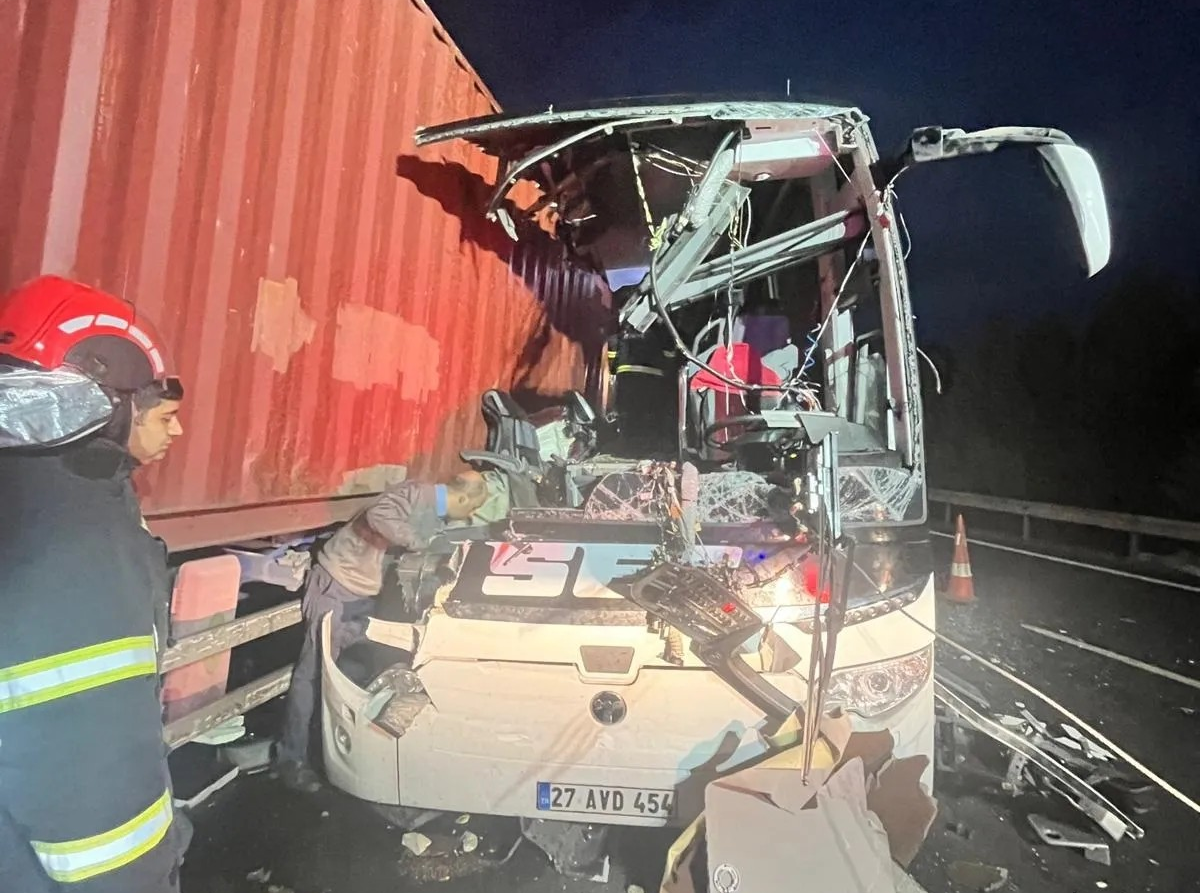 Adana-Gaziantep otoyolu Bahçe ilçesi Ayran Tüneli yakınlarında bu sabah erken saatlerde büyük bir trafik kazası yaşandı. Saat 05.00 sıralarında, sürücüsü henüz belirlenemeyen SEÇ turizme ait 27 AVD 454 plakalı yolcu otobüsü, aynı güzergahta ilerleyen 06 CSZ 652 plakalı TIR’a arkadan çarptı.