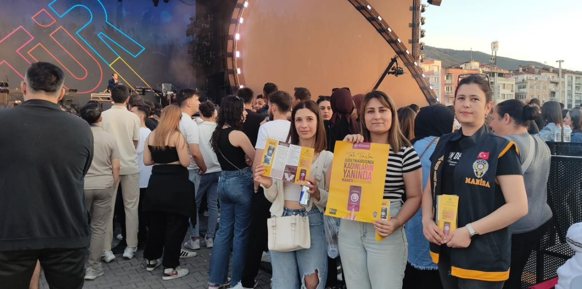 İlimizde düzenlenen Kültür Yolu Festivali etkinlikleri kapsamında gerçekleştirilen Ebru Yaşar konseri öncesinde, Asayiş Şube Müdürlüğü Aile İçi ve Kadına Karşı Şiddetle Mücadele Büro Amirliği görevlilerince, konsere katılan kadın vatandaşlarımıza *KADES* uygulamasının yükletilmesi ve kullanımı ile erkek vatandaşlarımıza *KADINA EL KAL-KA-MAZ* konularında bilgilendirme yapılarak broşür dağıtımı gerçekleştirilmiştir.