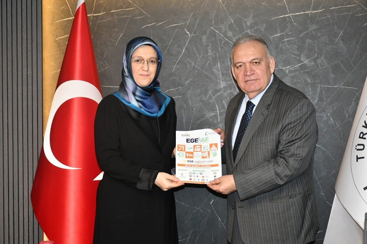 TUTSO Yönetim Kurulu Başkanı Faruk Aydın'ı ziyaret ederek EGEKAF’25’e katılım davetini ileten, Rektör Prof. Dr. Rana Kibar, fuarın gençlere sağlayacağı fırsatlar ve üniversite-sanayi iş birliği konularında bilgilendirmede bulundu.
