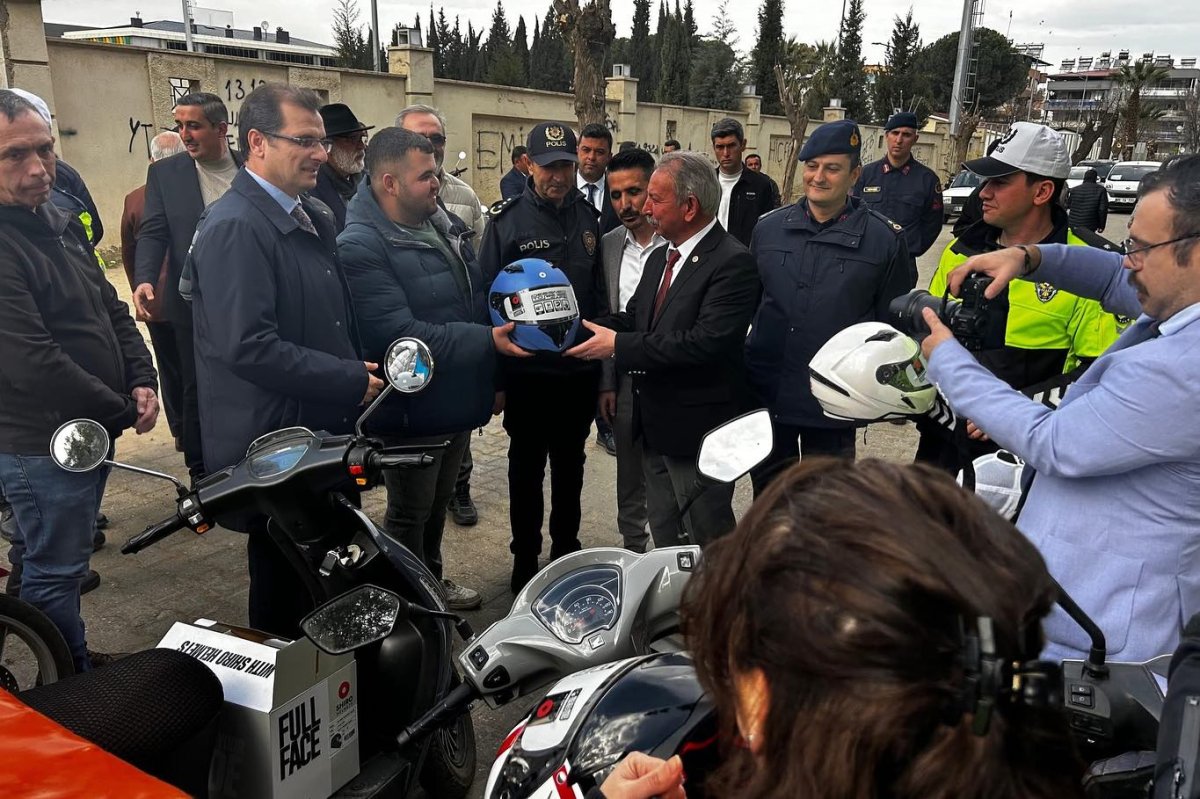 Salihli'de motosiklet kullanıcılarına kask dağıtıldı