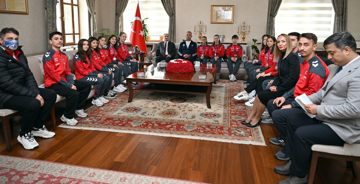 Şampiyon sporcuları kabul eden vali Özkan sporcuları kutladı