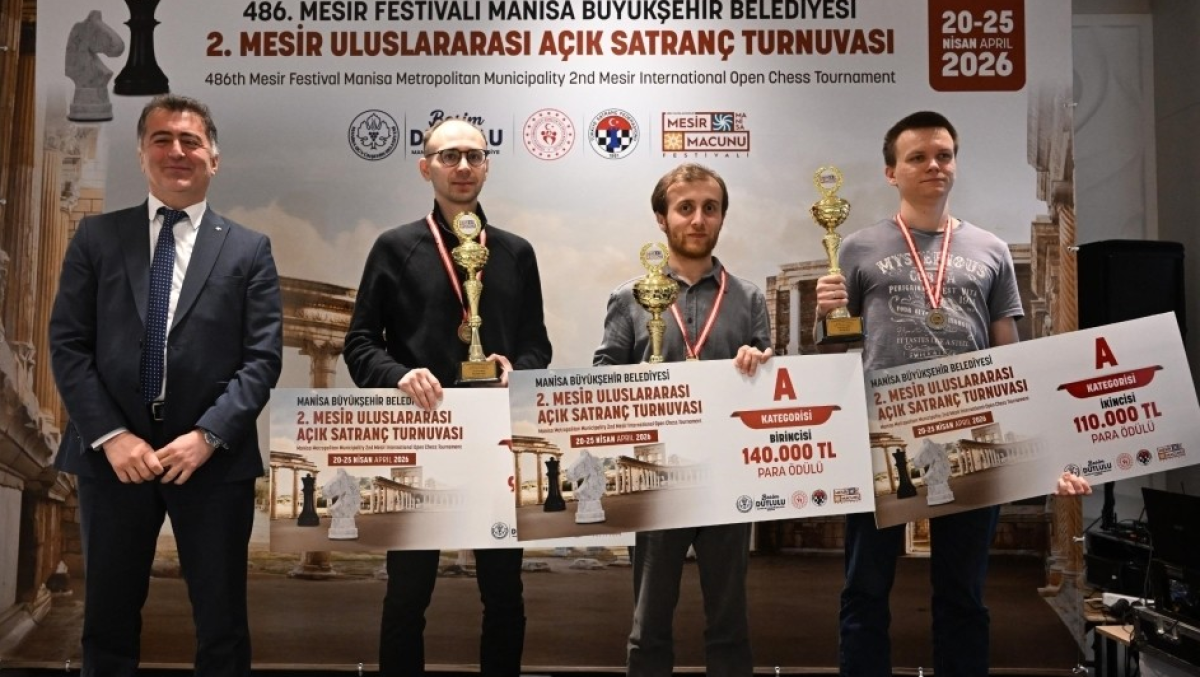 Santraç turnuvası birincileri ödüllerini aldı.486. Uluslararası Manisa Mesir Macunu Festivali kapsamında düzenlenen ve büyük heyecana sahne olan 2. Mesir Uluslararası Açık Satranç Turnuvası tamamlandı. 16 ülkeden 230 sporcunun hamle yaptığı turnuvanın şampiyonu, Azerbaycanlı sporcu Vugar Rasulov oldu. Rasulov, şampiyonluk kupasının yanı sıra 140 bin TL’lik büyük ödülü de kazandı.