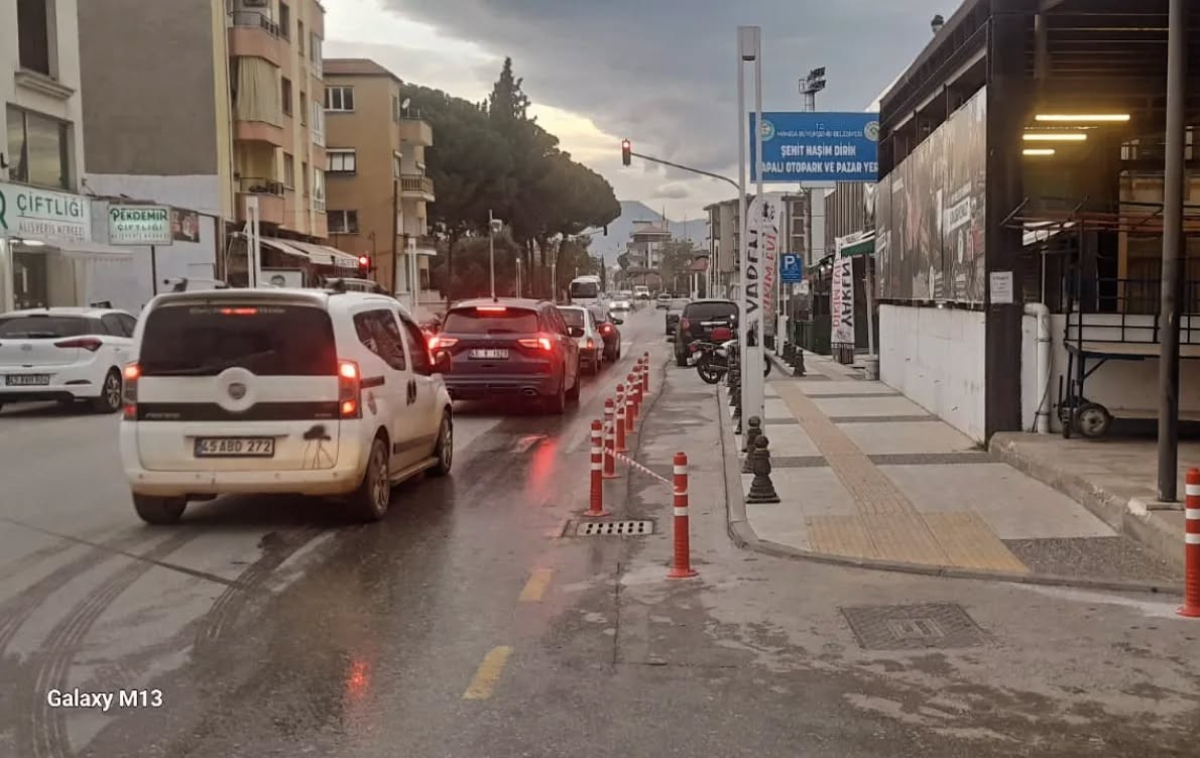 Sarıgöl'de otobüs ve dolmuş durakları dubalarla güvenli hale getirildi