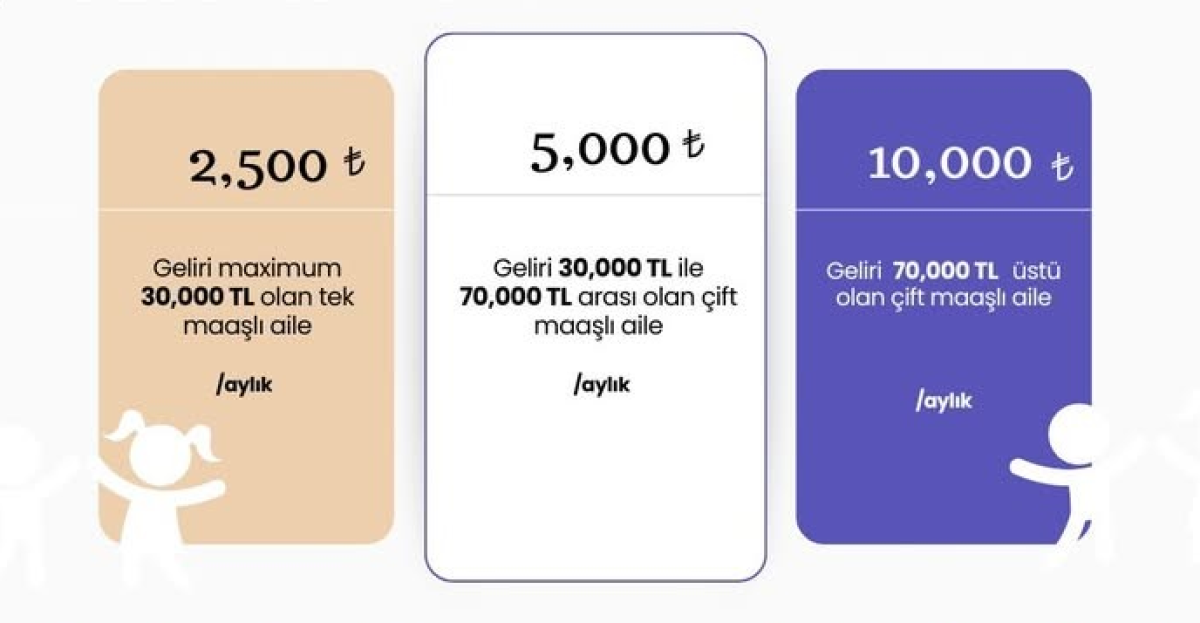 5.000 TL: Geliri 30.000 TL ile 70.000 TL arasında olan çift maaşlı aileler için.