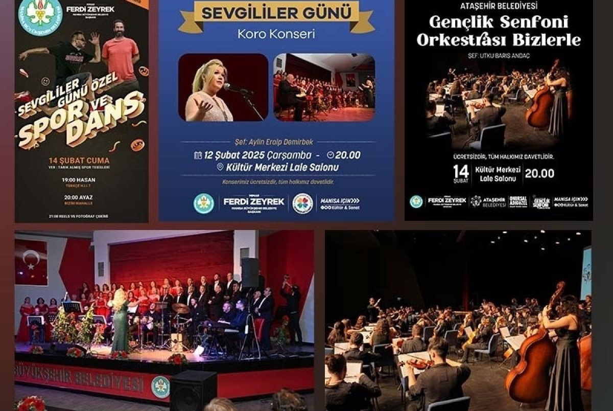 Manisa Büyükşehir Belediyesi, 14 Şubat Sevgililer Günü’nde şehrin kültürel ve sportif yaşamına renk katacak etkinliklere imza atacak.12 Şubat akşamı Manisa Büyükşehir Belediyesi Konservatuarı Türk Sanat Müziği Korosu, Şef Aylin Eralp Demirbek yönetiminde, sevginin ve müziğin buluşacağı konserde sahne alacak. 14 Şubat’ta ‘Sevgililer Günü Özel Spor ve Dans’ etkinliğinde, yaptıkları danslarla sosyal medyada büyük ilgi gören spor eğitmenleri Hasan Kılınçer ve Hüseyin Ayaz, Manisalılarla bir araya gelecek. Çocuk ve gençlerin oluşturduğu İstanbul Ataşehir Belediyesi Gençlik Senfoni Orkestrası ise yine 14 Şubat akşamında iki konserle sanatseverlere müzik ziyafeti sunacak. ,