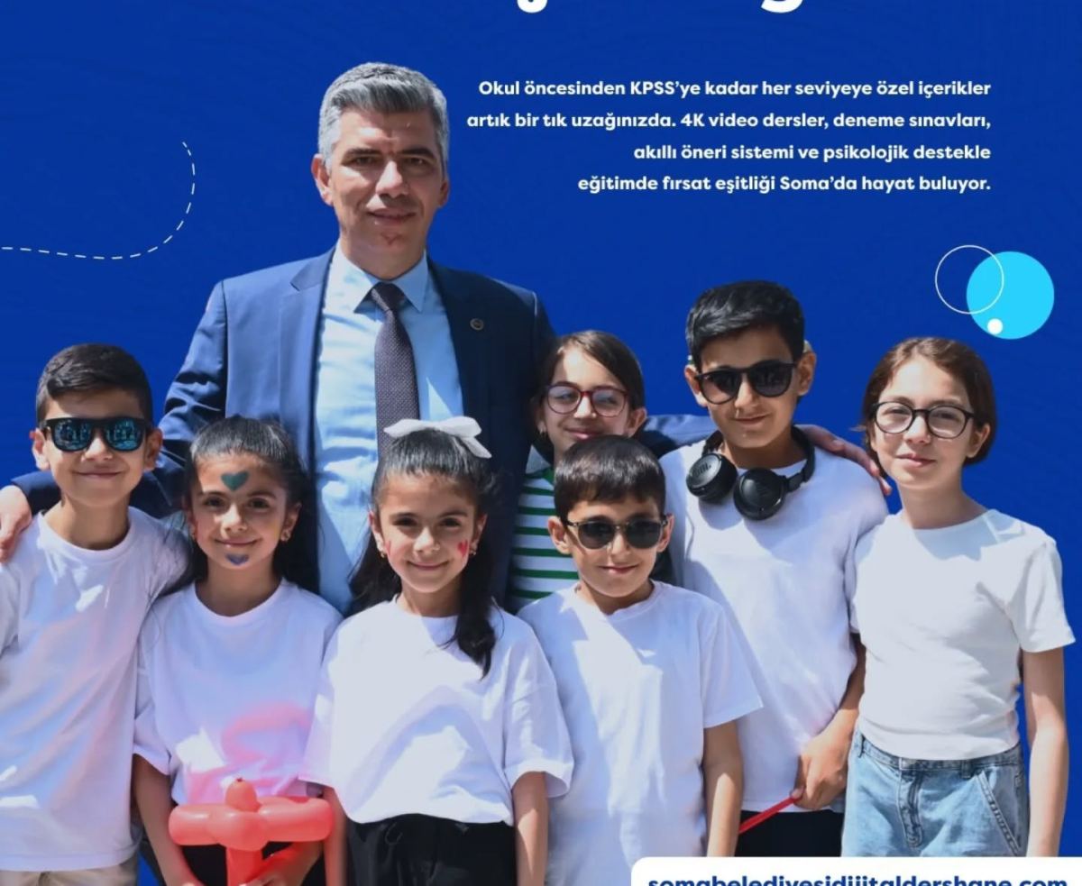 Soma Belediyesi olarak, öğrencilerimiz için ücretsiz Dijital Dershane sistemini hayata geçiriyoruz.Okul öncesinden lise son sınıfa kadar her seviyeye uygun, MEB müfredatına uyumlu video dersler, testler, denemeler artık tek tıkla sizlerle.
