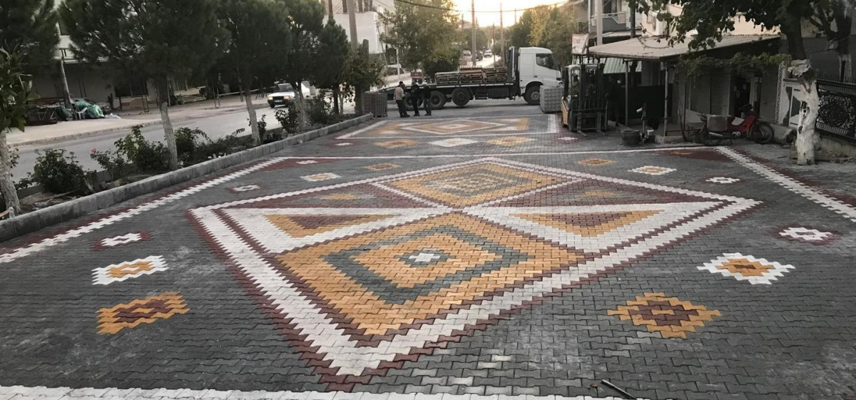 Soma'da Avdan mahallesi'ne kilim desenli taş döşeme