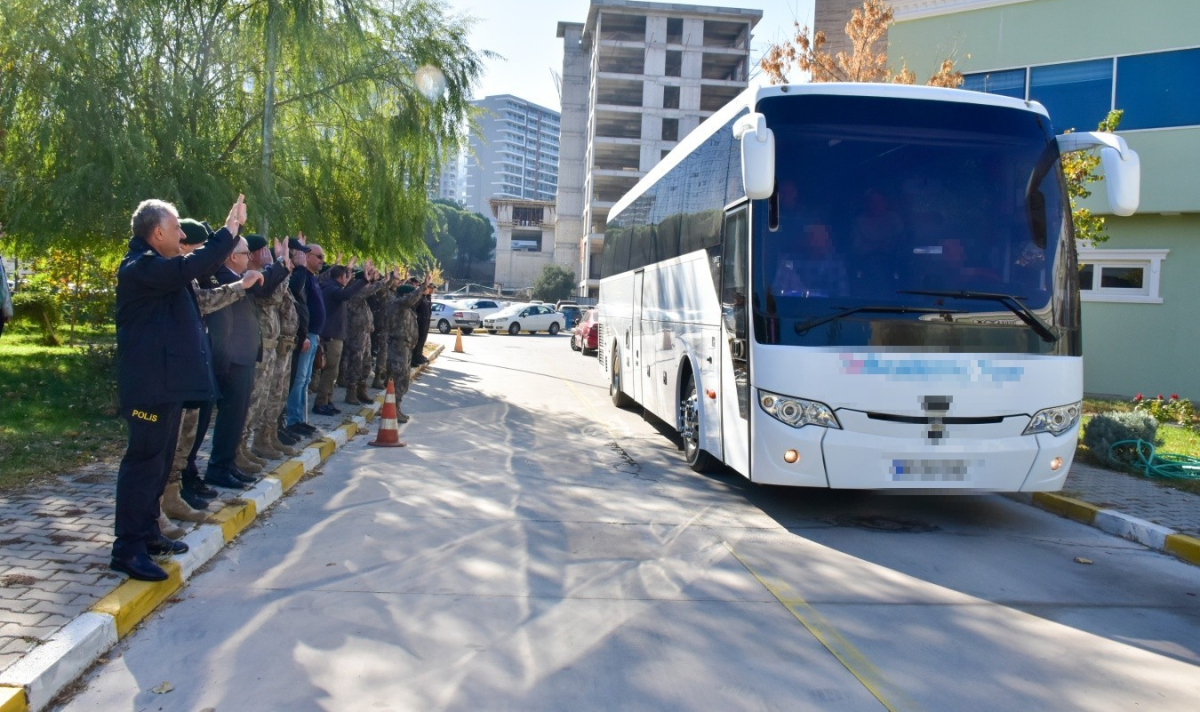 İl Emniyet Müdürü Fahri AKTAŞ, Manisa İl Müftüsü Şükrü KABUKÇU ve personelin katılımlarıyla Suriye/Afrin bölgesinde terörle mücadele kapsamında görev alacak kahraman Özel Harekat Polisler, kaza ve belaların def’i için kesilen kurbanın ardından okunan dualarla uğurlandı.