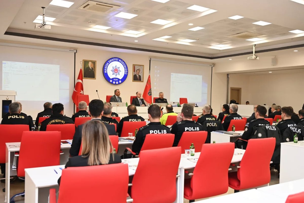 Vali Vahdettin Özkan,başkanlığında İl Emniyet Müdürlüğü 2024 Yılı Değerlendirme Toplantısını yapıldı.Vali Yardımcısı Mustafa Harputlu, İl Emniyet Müdürü Fahri Aktaş, birim amirleri ve ilçe müdürlerinin katıldığı toplantıda, her ilçe için ayrı ayrı 2024 yılı güvenlik ve asayiş konuları görüşüldü, 2025 yılında yapılacaklar değerlendirildi.Emniyet Teşkilatına, Manisalı vatandaşların huzur ve güvenliği için gerçekleştirdiği özverili çalışma ve başarılı operasyonlar sebebiyle teşekkür eden Vali Özkan, 2025 yılında da şehrimizde huzur ve güvenliği tesis etmek adına kararlılıkla çalışmaya devam edileceğini vurguladı.