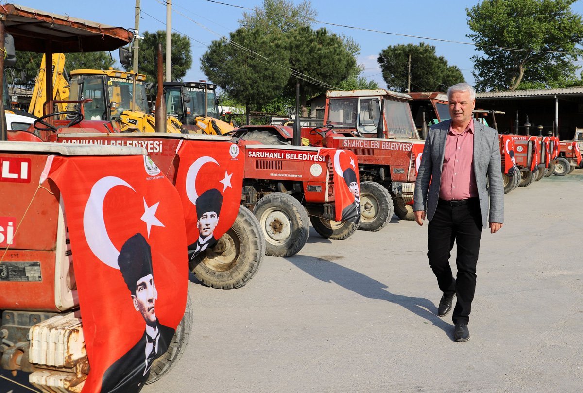 Türkiye'nın dört bir yanıdaki çiftçileri dertleri aynı.Bankalara ,Tarım kredi kooparatiflere olan borçlarını ödeyememeleri ve tarlalarına ve traktörlerine konan haçızler yüzünden Manisalı çiftçilerde aynı durumda.Onlara çok yakınında bir el uzandı..Haciz yüzünden tarımı yapmayı bırakan onlarca çiftçiye CHP'li Saurhanlı belediye başkanın yardım eli uzandı.Belediye başkanı Zeki Bilgin belediyenin 18 traktörünü çiftçiye tahsis etti.Başkan Bigin''Belediye şantiyelerde bulunan traktörlerimizi çiftçilerimizin hizmetine sunduk.Mazot desteği de vererek tarımı bırakan onlarca üreticinin tarlalarını sürmelerini ekmelerini sağladık.''dedi Uzatılan eli yeniden tarlarını eken onlarca üretici ''Yeniden üretime başladık belediye ait 18 traktörü üreticilerin emrine verdi. Başkan hem traktörün ve mazotunu verdi.Allah razı olsun başkandan.Yeniden üretime başladık.''diye seviçlerini dile getirdiler.