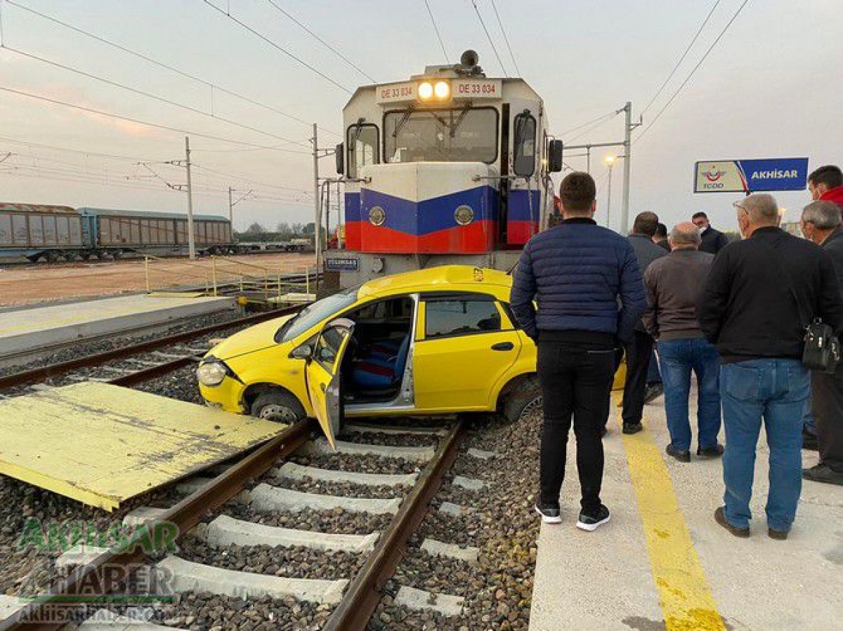 Akhisar’da bariyerleri olmayan hemzemin geçitten geçen otomobil yük vagonun altında kaldı.Otomobil yük trenin önünde 50 metre sürüklendi. Kazada otomobil sürücüsü aracından atlayarak kurtuldu.