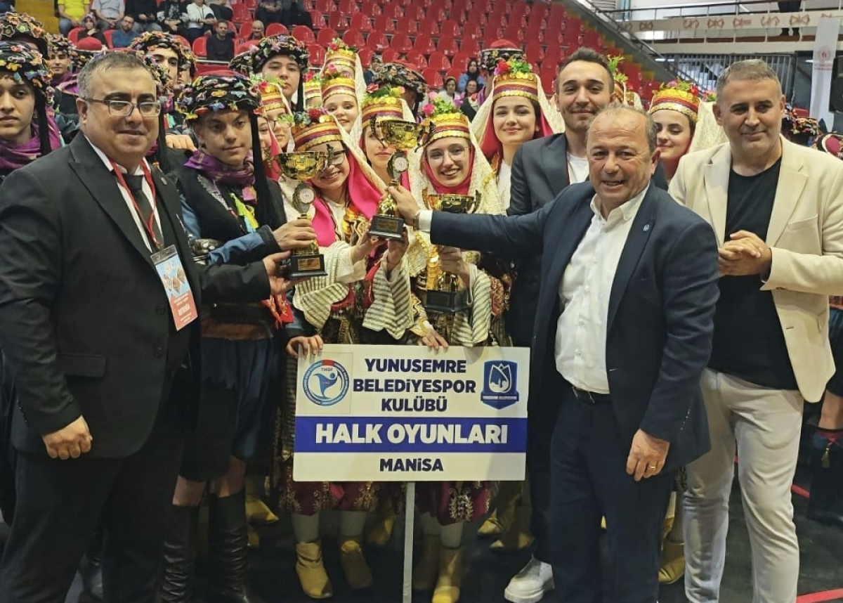 Yunusemre Belediyespor Halk Oyunları Ekibi, Türkiye Halk Oyunları Federasyonu'nun 2025 yılı faaliyet programında yer alan Kulüplerarası Halk Oyunları İl Birinciliği'nde üç dalda şampiyon olarak kupaları topladı. Manisa Atatürk Spor Salonu'nda yapılan yarışmalarda performansıyla göz dolduran Yunusemre Belediyespor, gençler geleneksel düzenlemesiz karma, gençler geleneksel düzenlemeli ve gençler geleneksel düzenlemesiz erkekler dalında il şampiyonu oldu. Mavi Beyazlı kulüp, gençler düzenlemesiz karma dalında topladığı 87.80 puanla müsabakalara katılan 16 ekip arasında en yüksek puanı almayı başardı. Gençler, elde ettiği başarıyla üç dalda Manisa'yı grup müsabakalarında temsil etmeye hak kazandı. Tüm ekibe kupa ve madalyalarını Yunusemre Belediye Başkan Yardımcısı Hakan Gürtunca ve Yunusemre Belediyespor Kulüp Başkanı Bülent Kanik takdim etti.