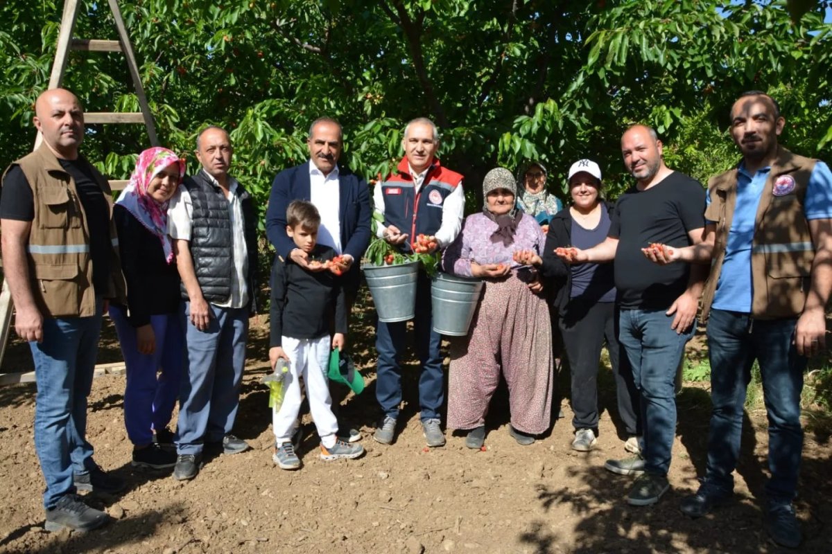 Kuzey yarımkürede kirazın en erken yetiştiği yer olan Manisa'nın Sancaklıbozköy Mahallesindeki kiraz üreticileri ile bir araya gelen Manisa İl Tarım ve Orman Müdürü Metin Öztürk ve Ege Yaş Meyve Sebze İhracatçıları Birliği Başkanı Hayrettin Uçak, erkenci çeşit "Cristobalina" cinsi kirazların toplama çalışmalarına katıldı.
