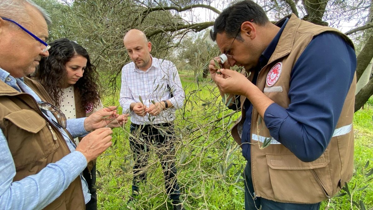 Zeytinde Yaprak Dökümünü Uzmanlar İnceledi.İlçe Müdürümüz Ahmet Kılıç’ın koordine ettiği çalışma kapsamında, Bornova Zirai Mücadele Araştırma Enstitüsü Müdürlüğü’nden konu uzmanı Dr. Barbaros Çetinel ile Manisa il ve Akhisar ilçe tarım müdürlüklerinde görevli ziraat mühendislerinden oluşan bir heyet, zeytin ağaçlarında görülen yaprak dökümünü mercek altına aldı.