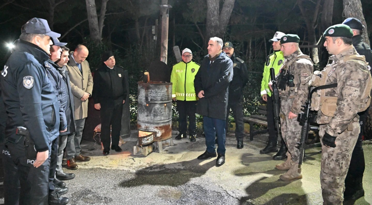 Manisa Valisi Vahdettin Özkan 'Vatandaşlarımızın güvenli bir şekilde yeni yıla girmesi için sahadayız'.dedi.Vali Vahdettin Özkan, İl Jandarma Komutanı Tuğgeneral İlhan Şen ve İl Emniyet Müdürü Fahri Aktaş ile birlikte yılbaşı güvenlik tedbirleri kapsamında gerçekleştirilen denetimlere katıldı.Vali Özkan, 2025 yılına huzurlu ve güvenli bir başlangıç yapılması için yürütülen çalışmalar hakkında bilgi aldı, gece gündüz demeden fedakârca çalışan personele teşekkür ederek yeni yıllarını kutladı.