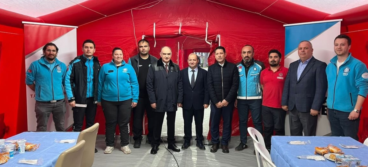 Vali Vahdettin Özkan, Ramazan’ın paylaşma ve dayanışma ruhunu yansıtan UMKE iftar çadırına konuk oldu.Milletimizin en zor anlarında dahi görev başında olan fedakâr sağlık personelimizle bir araya gelen Vali Özkan, insan hayatını önceleyen özverili çalışmaları dolayısıyla UMKE ekibine teşekkür etti.Kamu hizmetlerinde koordinasyon ve birlik ruhunun önemine dikkat çeken Vali Özkan, İl Sağlık Müdürü Fatih Zeren’den sahada yürütülen çalışmalar hakkında da bilgi aldı.