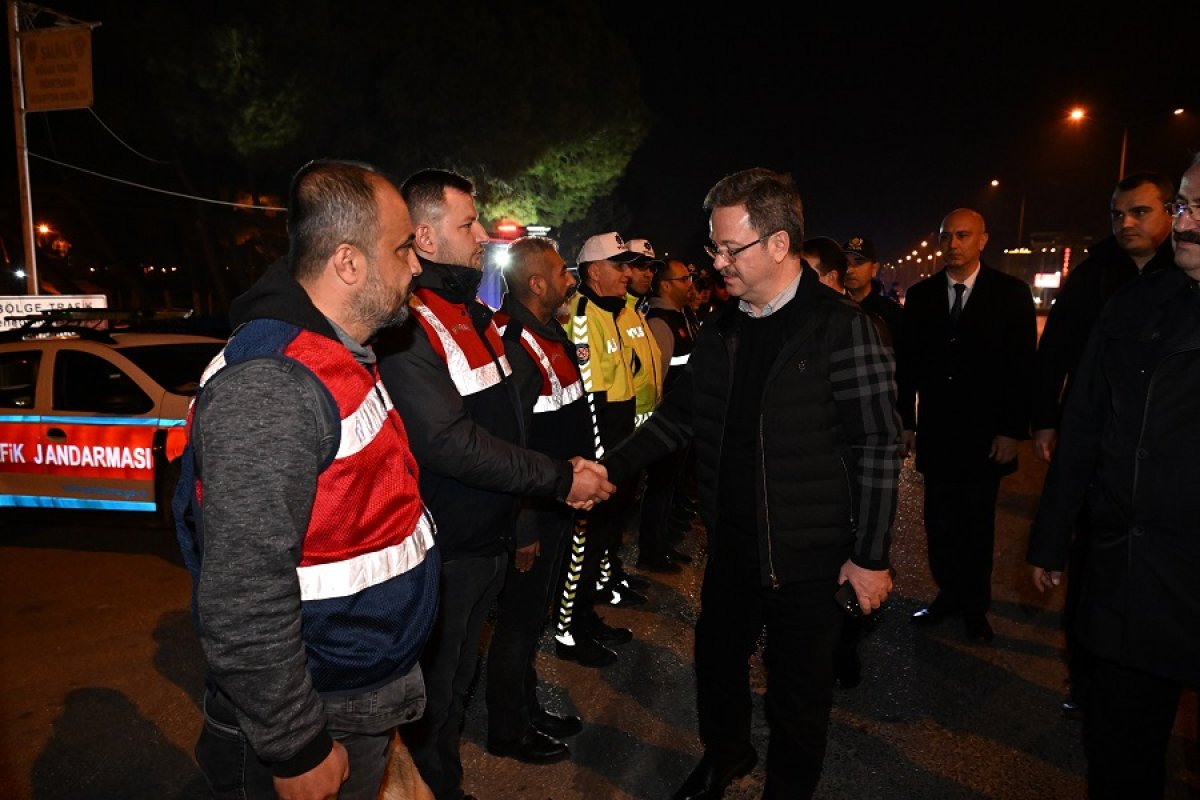 Vali Enver Ünlü, Salihli Polis-Jandarma Ortak Uygulama Noktasında 2023 yılının son gecesini görev başında geçiren kolluk güçlerini ziyaret etti. Yollarda güvenliği sağlamak için görev başında olan personele hayırlı görevler dileyen Vali Ünlü, seyahat eden vatandaşlara da hayırlı yolculuklar ve iyi yıllar diledi.