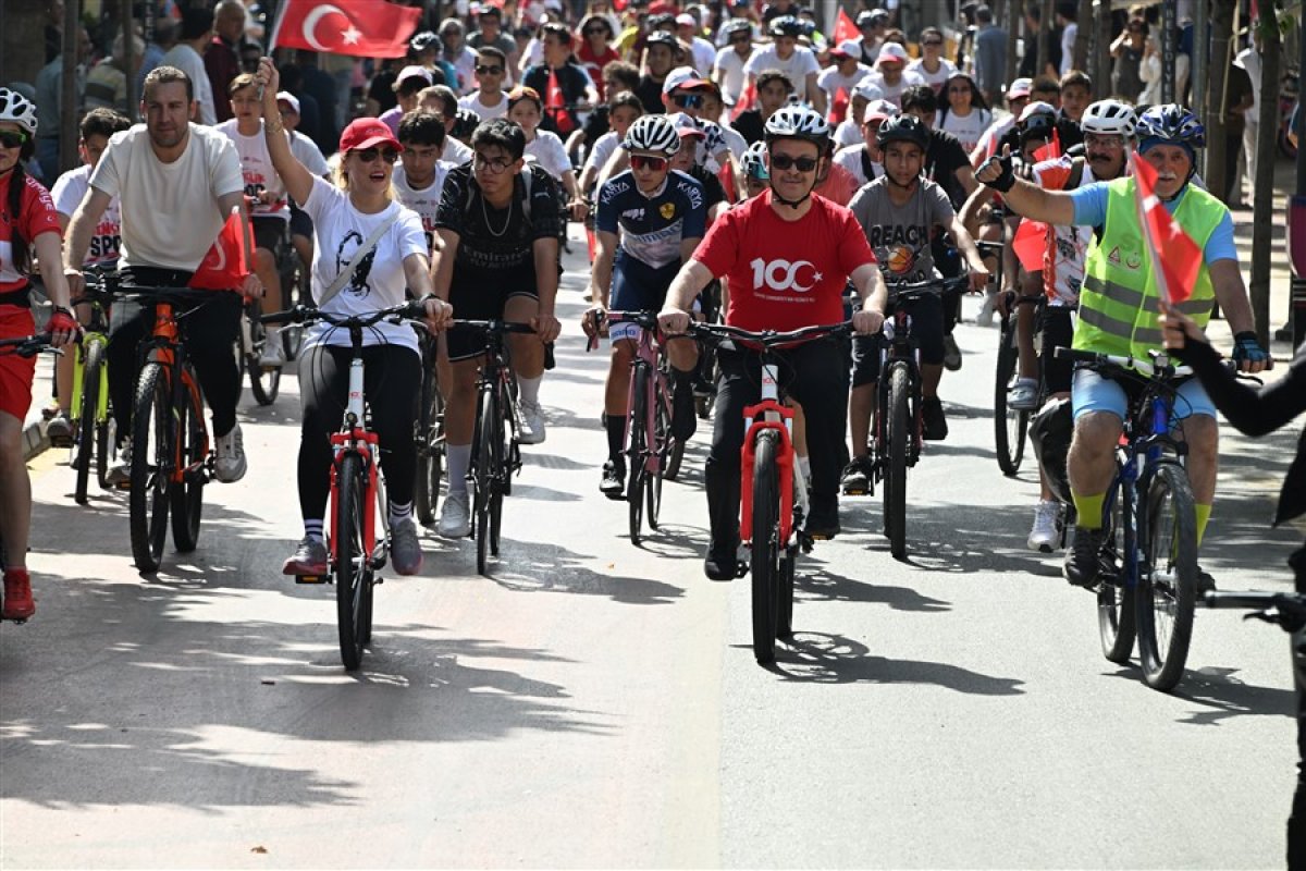 Bisiklet turu öncesi katılımcılara Türk Bayrağı dağıtan Vali Ünlü daha sonra protokol üyeleri ve bisikletçilerle birlikte pedal çevirdi.Cumhuriyet Meydanı’ndan başlayan ve şehir merkezinde atılan tur sonrası yine aynı meydanda sona eren bisiklet turuna katılanlar ellerinde Türk bayraklarıyla marş eşliğinde bisiklet sürdü.