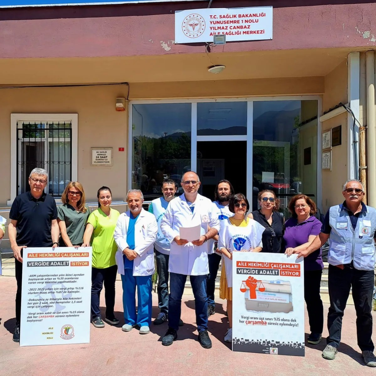 Aile Sağlığı Merkez(ASM) çalışanları ve diğer sağlık çalışanlarından her ay artarak kesilen yüksek vergi oranlarının kabul edilemez hale geldiğinin dile getirildiği basın açıklamasında şu ifadelere yer verildi “21 Şubat 2024 tarihinde her hafta Çarşamba günleri tüm ASM binalarında ve hastane önlerinde ‘Vergide adalet İstiyoruz’ eylemlerimize kayıtsız kalan hükümetin karlarını her geçen gün artıran şirketleri nasıl kayırdığını görüyoruz ve bunun karşısında sessiz kalmayacağımızı bir kez daha ilan ediyoruz. Vergi kesintilerinin her ay sabit ve en fazla yüzde 15 oranında olmasını istiyoruz.