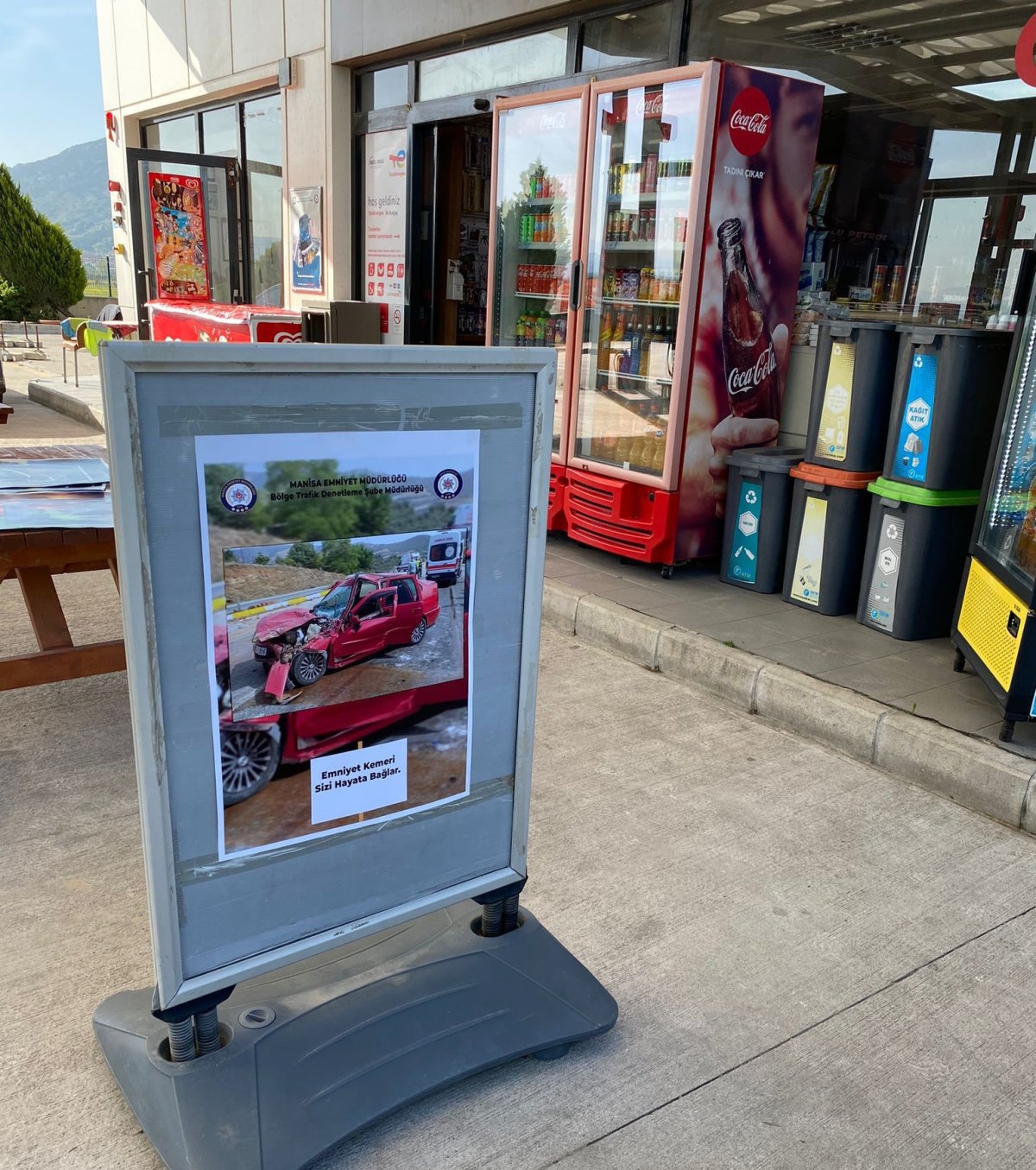 Manisa İl Emniyet Müdürlüğü Bölge Trafik Denetleme Şube Müdürlüğü ve bağlı Akhisar, Alaşehir, Kula, Salihli, Soma Bölge Trafik Denetleme İstasyon Amirlikleri tarafından Ramazan Bayramı tatili nedeniyle oluşacak trafik yoğunluğunda yol kullanıcılarının dikkatlerini artırmak amaçlı, dinlenme tesisleri, petrol istasyonları ile vatandaşların yoğun olarak bulunabileceği alanlara şube müdürlüğümüz tarafından hazırlanan afişler asılmıştır.