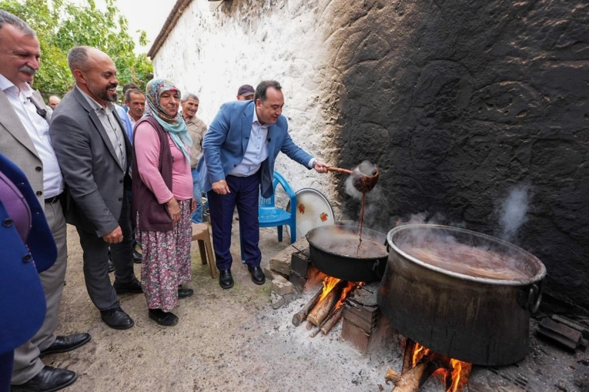 Yuntdağı'nda 4 mahalleyi ziyaret eden başkanlar pekmez kaynattı