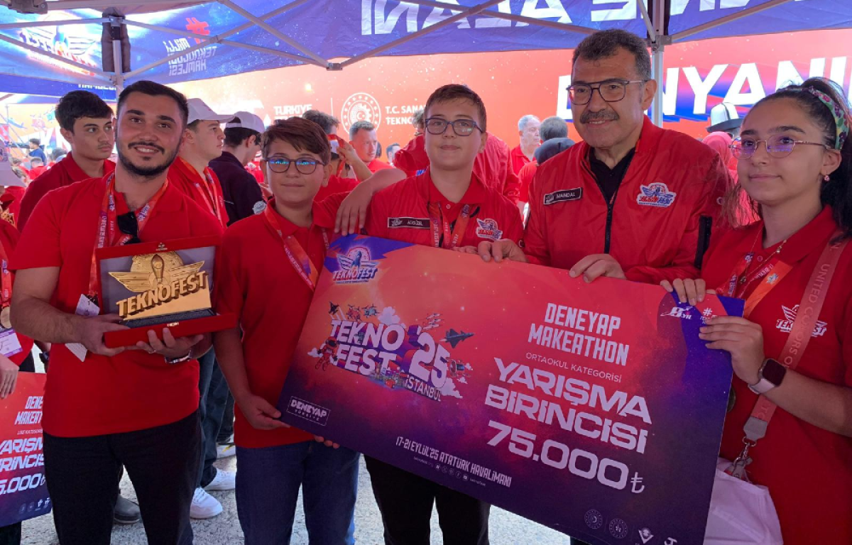Türkiye’nin en büyük Havacılık, Uzay ve Bilim Festivali olan TEKNOFEST, Sanayi ve Teknoloji Bakanlığı ile Türkiye Teknoloji Takımı Vakfı tarafından düzenleniyor. Bu yıl Kıbrıs’ın ardından ikinci kez İstanbul Atatürk Havalimanı’nda gerçekleştirilen festival, teknoloji severlerle buluştu. Festival kapsamında düzenlenen Deneyap Makeathon Yarışması’na bin 500 öğrenci başvurdu. Bu zorlu yarışmada Bilim Yunusemre Bilim Merkezi öğrencilerinden oluşan Summer Triangle Takımı, Akıllı Şehirler ve Ulaşım Temalı Proje kategorisinde Türkiye birinciliği elde etti. Takım; Mentor Öğretmen Mahmut Apaydın rehberliğinde, öğrenciler Burak Adıgüzel, Kemal Çetin ve Zehra Damla Bal’dan oluşuyor. Daha önce üçüncülük ödülü alan Bilim Yunusemre Bilim Merkezi takımları, bu kez birincilikle Manisa ve Yunusemre’ye büyük gurur yaşattı. Festivalin 4. gününde düzenlenen ödül töreninde Summer Triangle Takımı, ödülünü Cumhurbaşkanı Yardımcısı Cevdet Yılmaz ve Baykar Yönetim Kurulu Başkanı/T3 Vakfı Mütevelli Heyeti Başkanı Selçuk Bayraktar’ın elinden aldı.