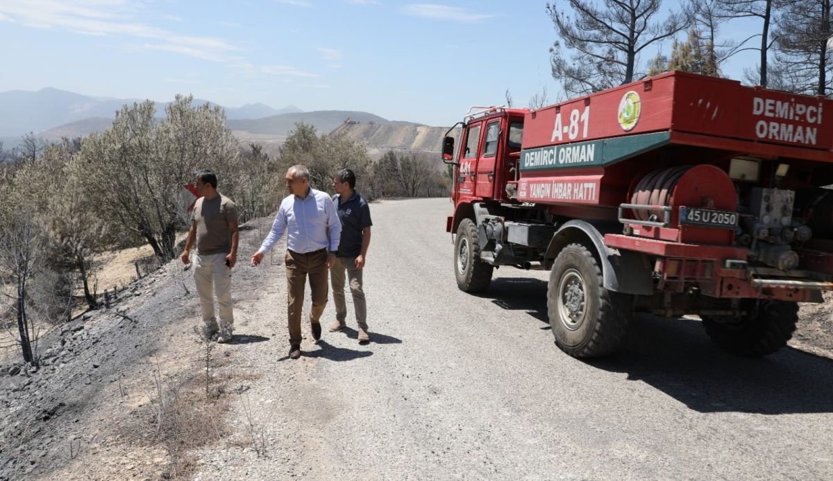 Manisa İl Tarım ve Orman Müdürü Metin Öztürk; Soma Deniş, Bayat ve Tekeli Işıklar Mahallelerinde ormanlık alanda çıkan yangın bölgesine giderek zarar gören tarımsal alanlarda incelemelerde bulundu.